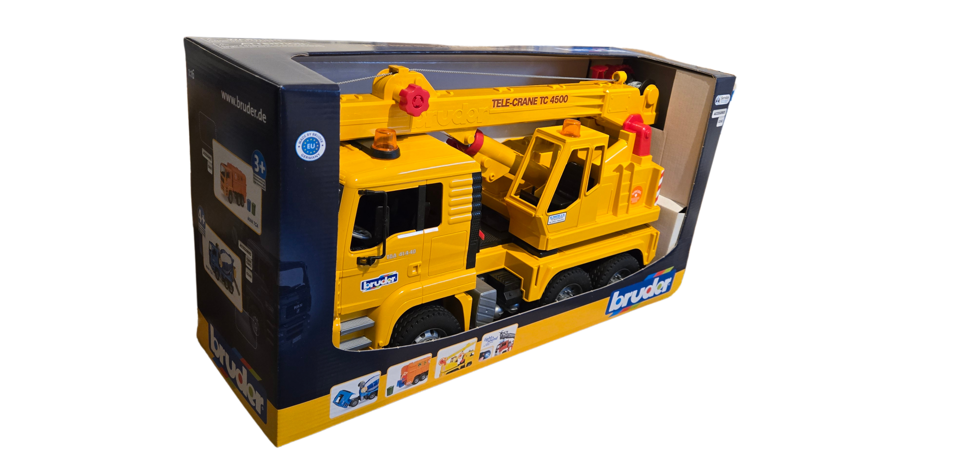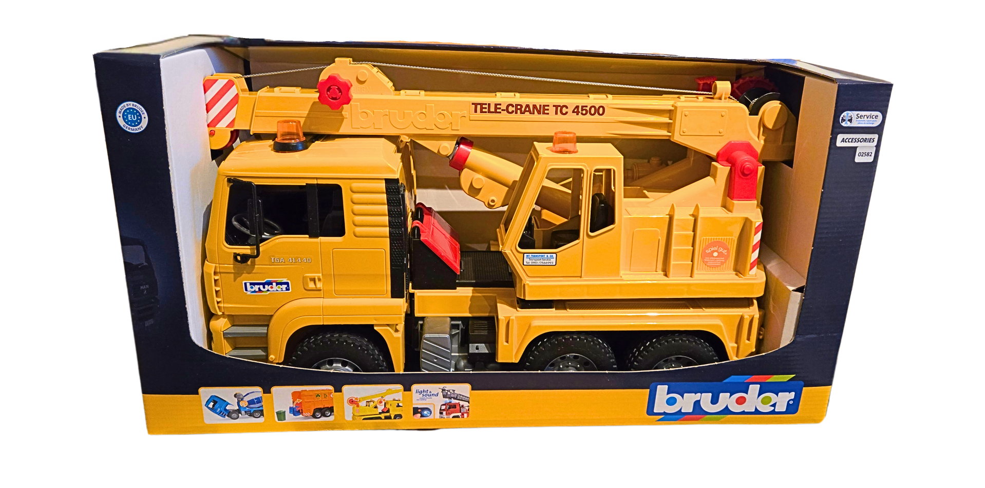 Deze prachtige kraan kan echt alles. De kraan kan 360 graden draaien en de arm kan worden uitgeschoven. Je kunt hem zelfs omhoog hijsen met het hydraulische systeem. De lier is volledig functioneel en met een druk op de knop laat je de lading zakken. Je kunt ook de vier poten uitschuiven voor een stevigere stand. Geweldig speelplezier voor alle bouwfans!