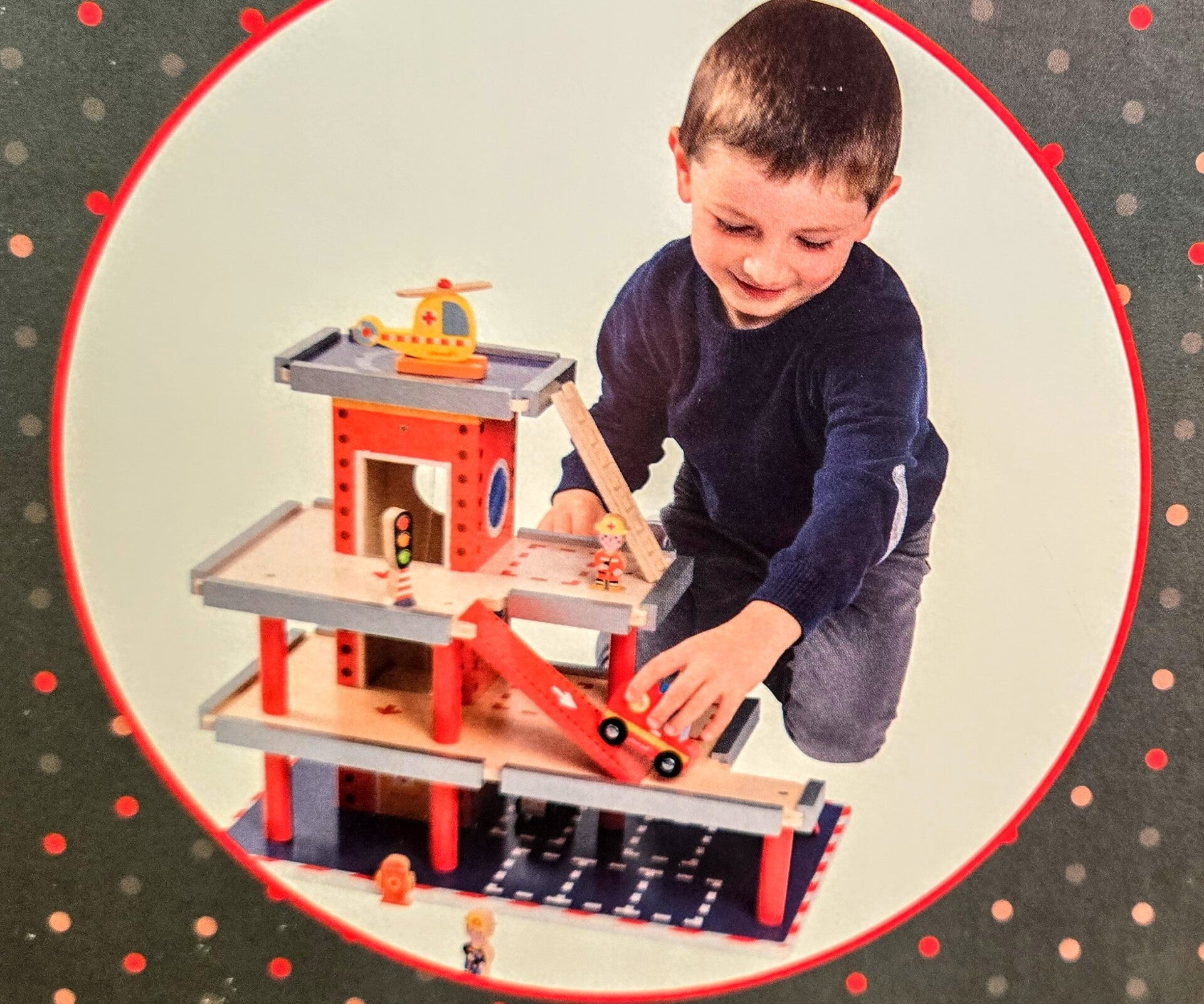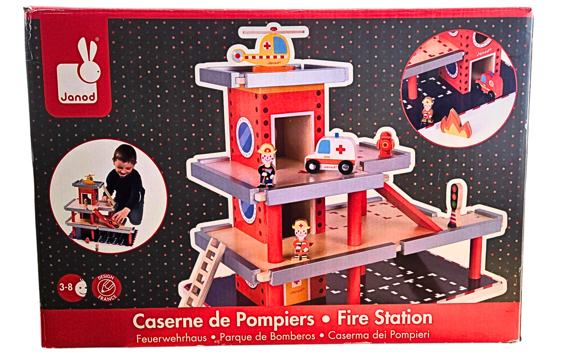 Ontdek de wereld van brandweermannen en maak je klaar om in actie te komen! Een grote houten brandweerkazerne met 3 verdiepingen, uitgerust met een handmatige lift en een helikopterplatform. Inclusief 10 houten accessoires: 1 ambulance, 1 brandweerwagen, 1 helikopter, 1 ladder, 1 verkeerslicht met drie kleuren, 1 brandkraan, 1 vuur en 3 brandweermannen.